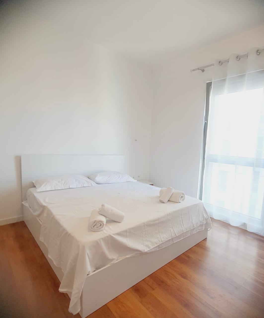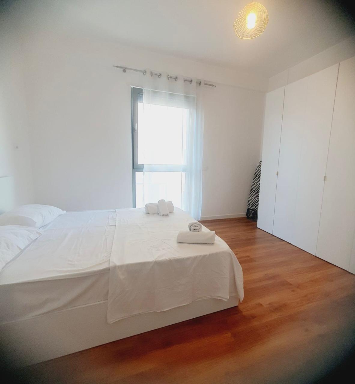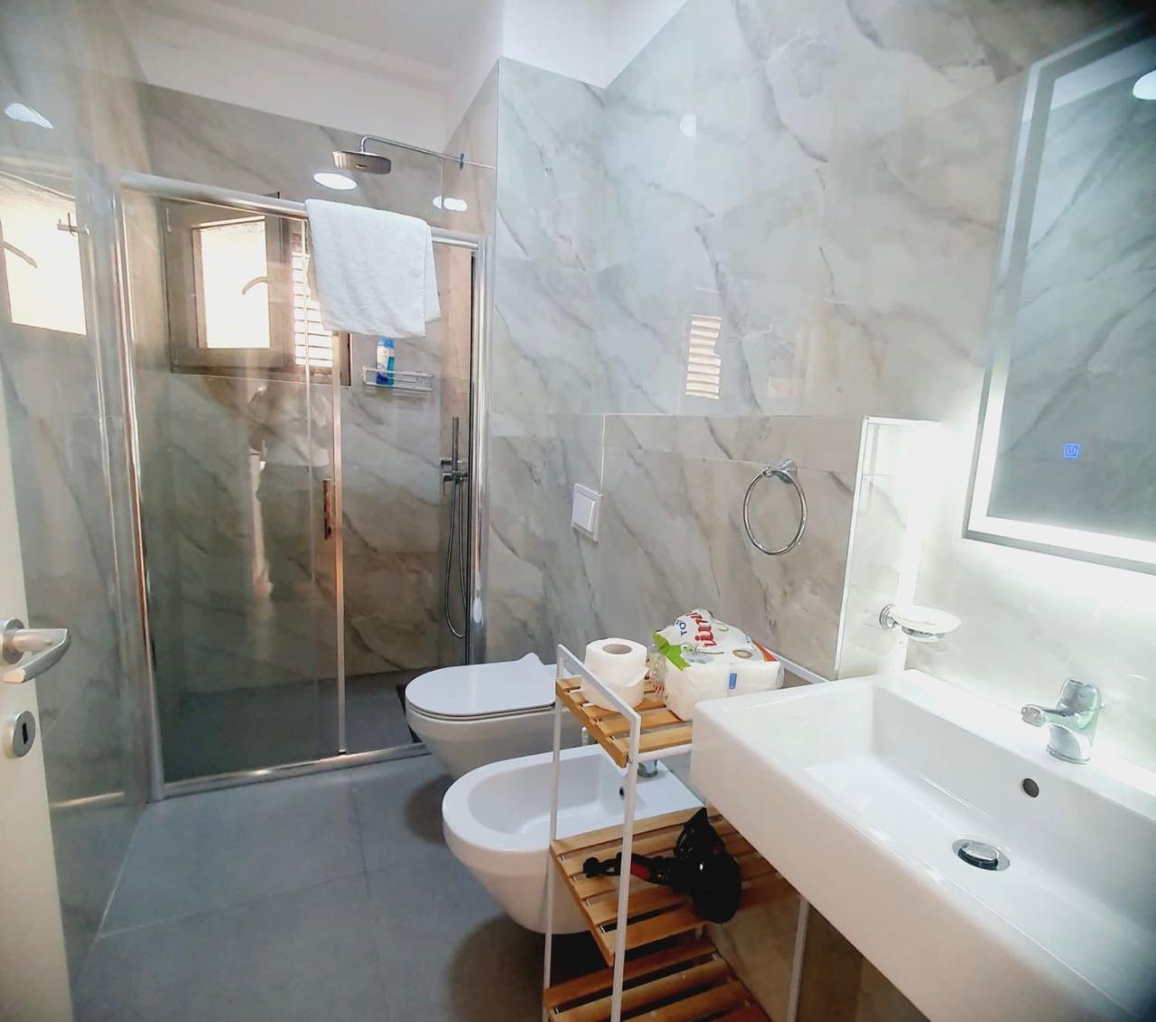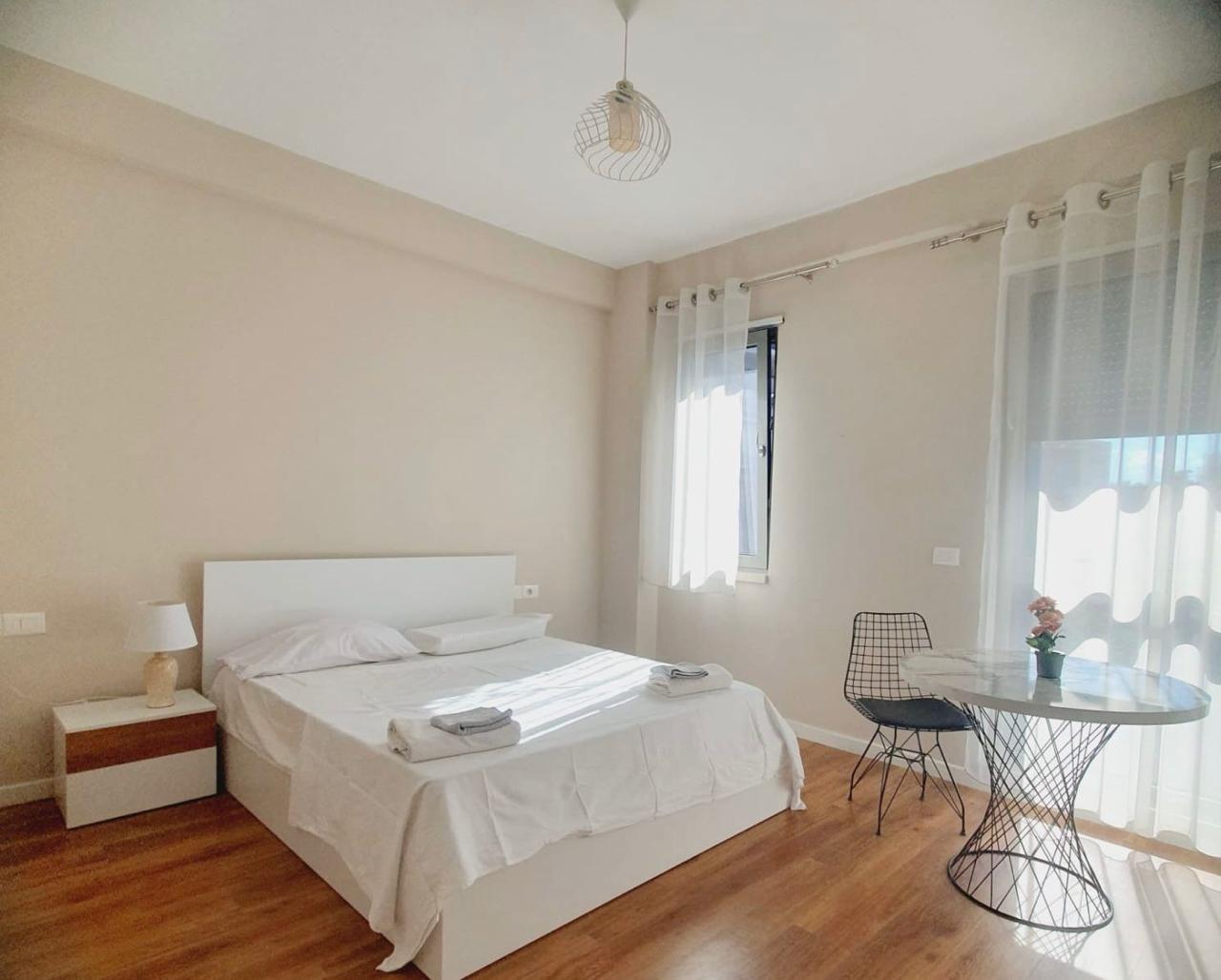 Bellissimo appartamento composto da soggiorno con cucina moderna a vista tavolo di cristallo per 4 persone , divano ad angolo grande finestra e tv a led.