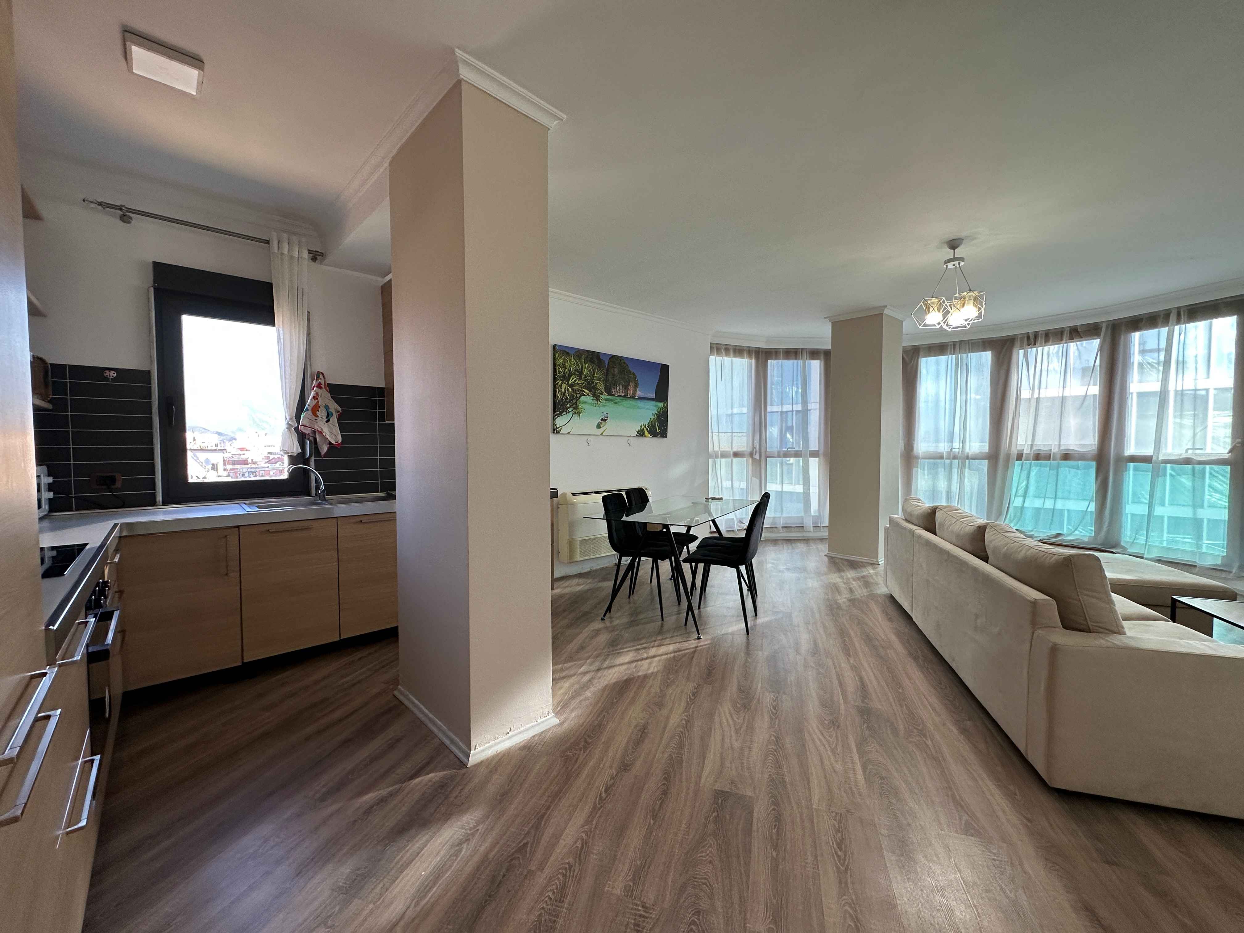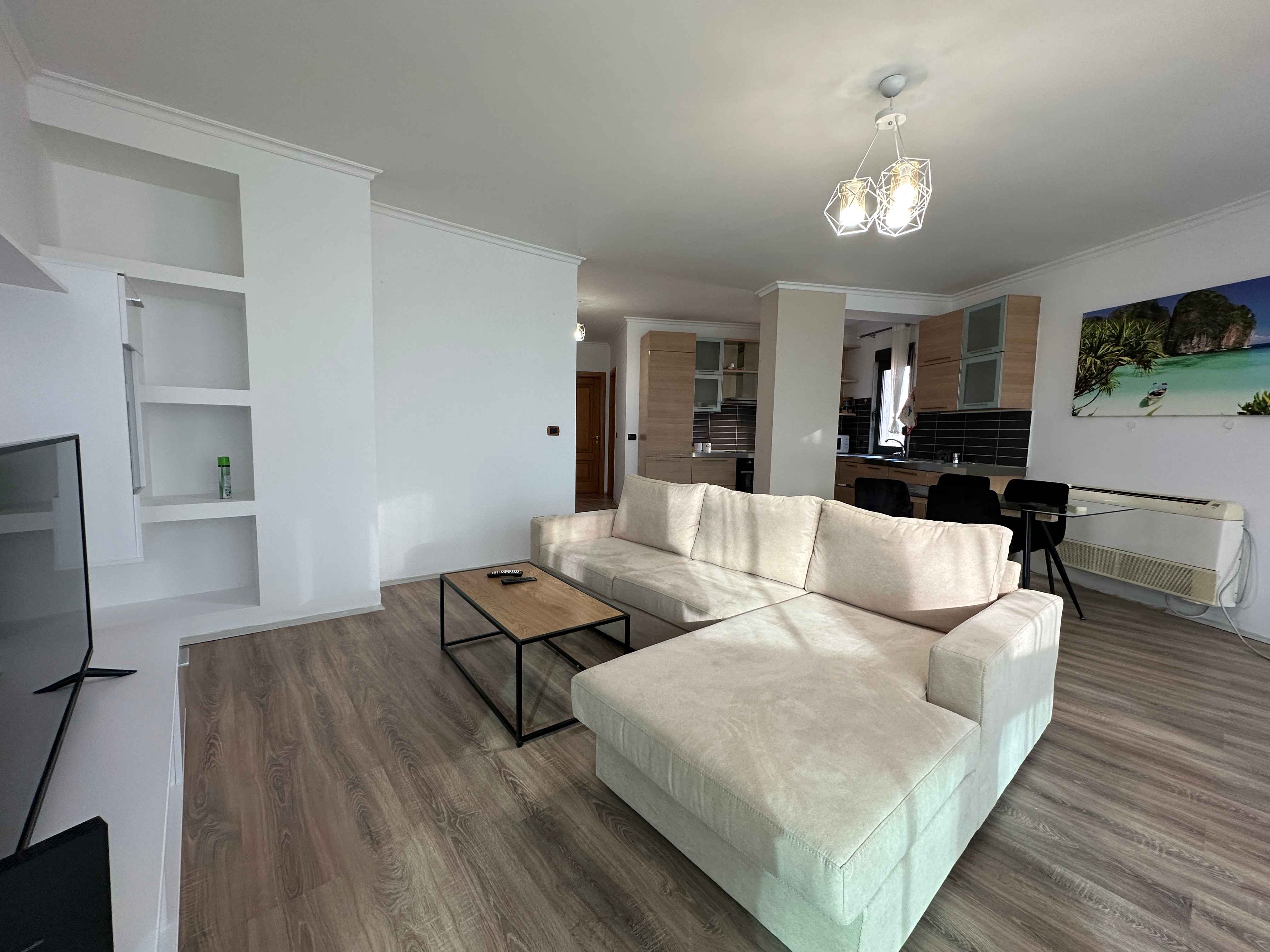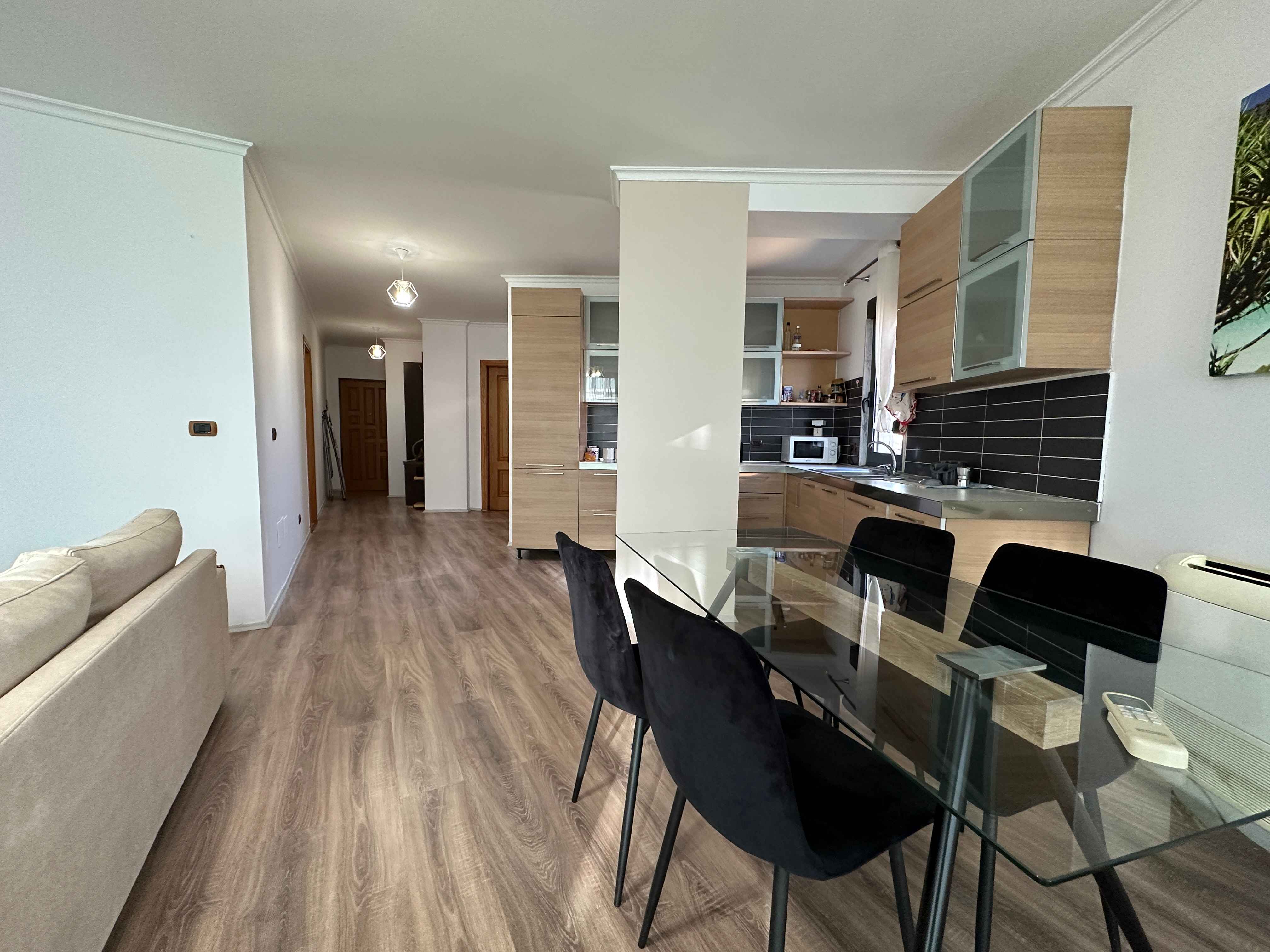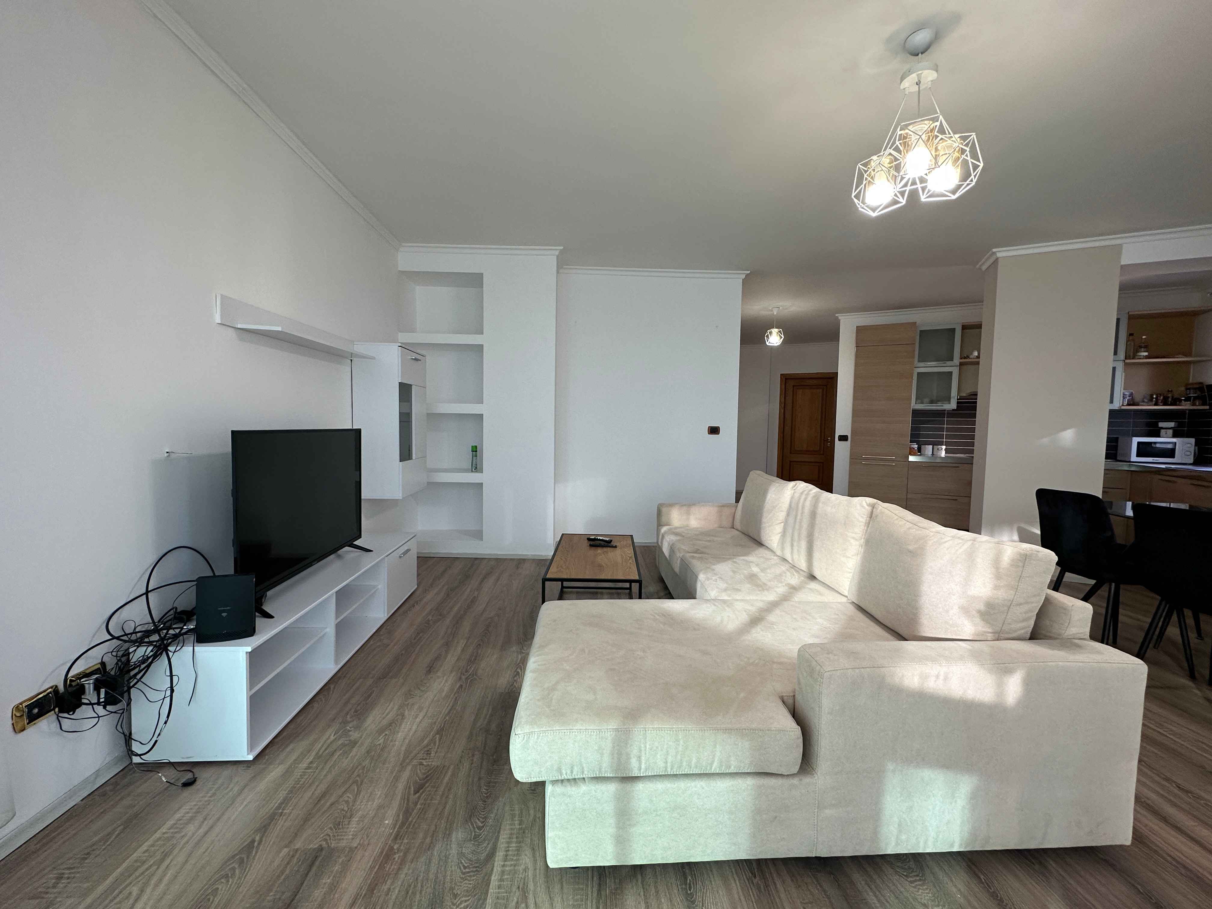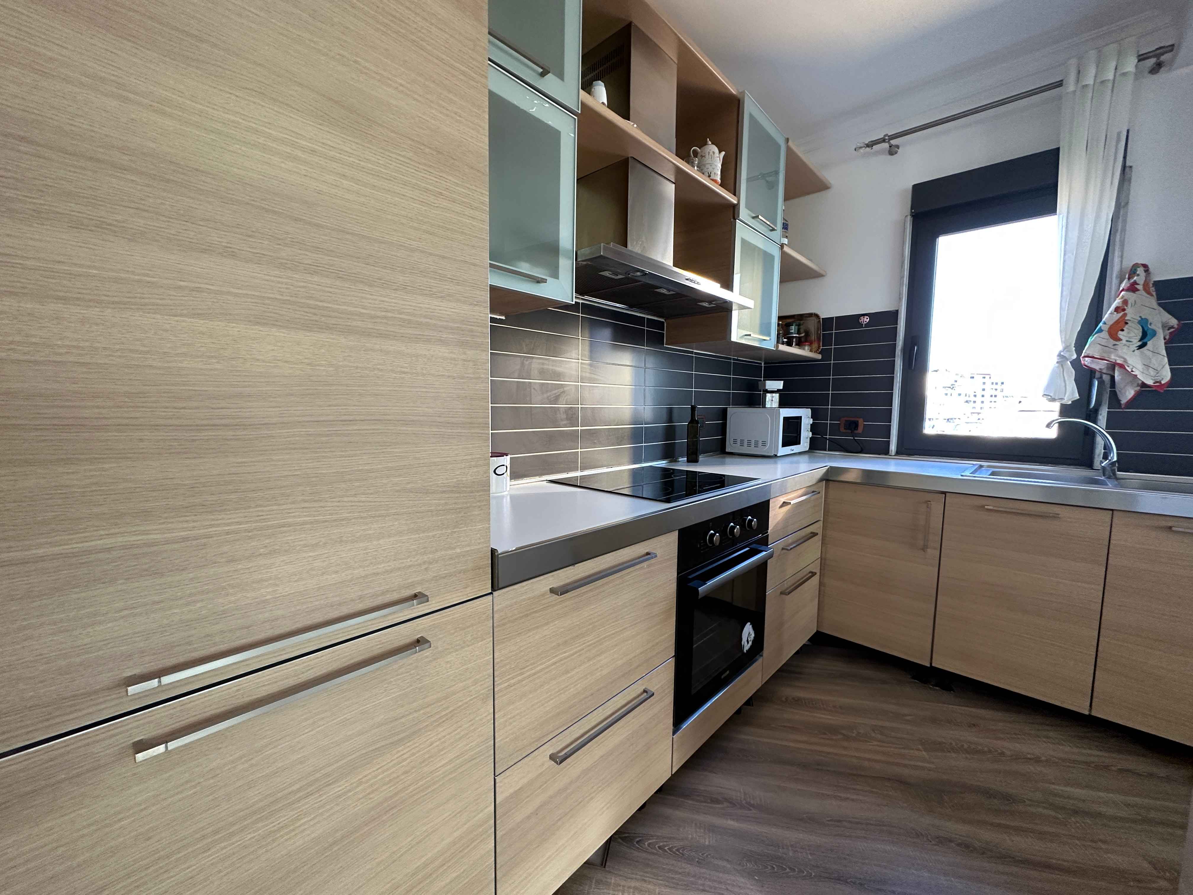 L'appartamento è composto da un ampio soggiorno con cucina moderna a vista che affaccia su un grande finestrone che illumina tutta la sala provvista di un ampio divano e tv a led.
