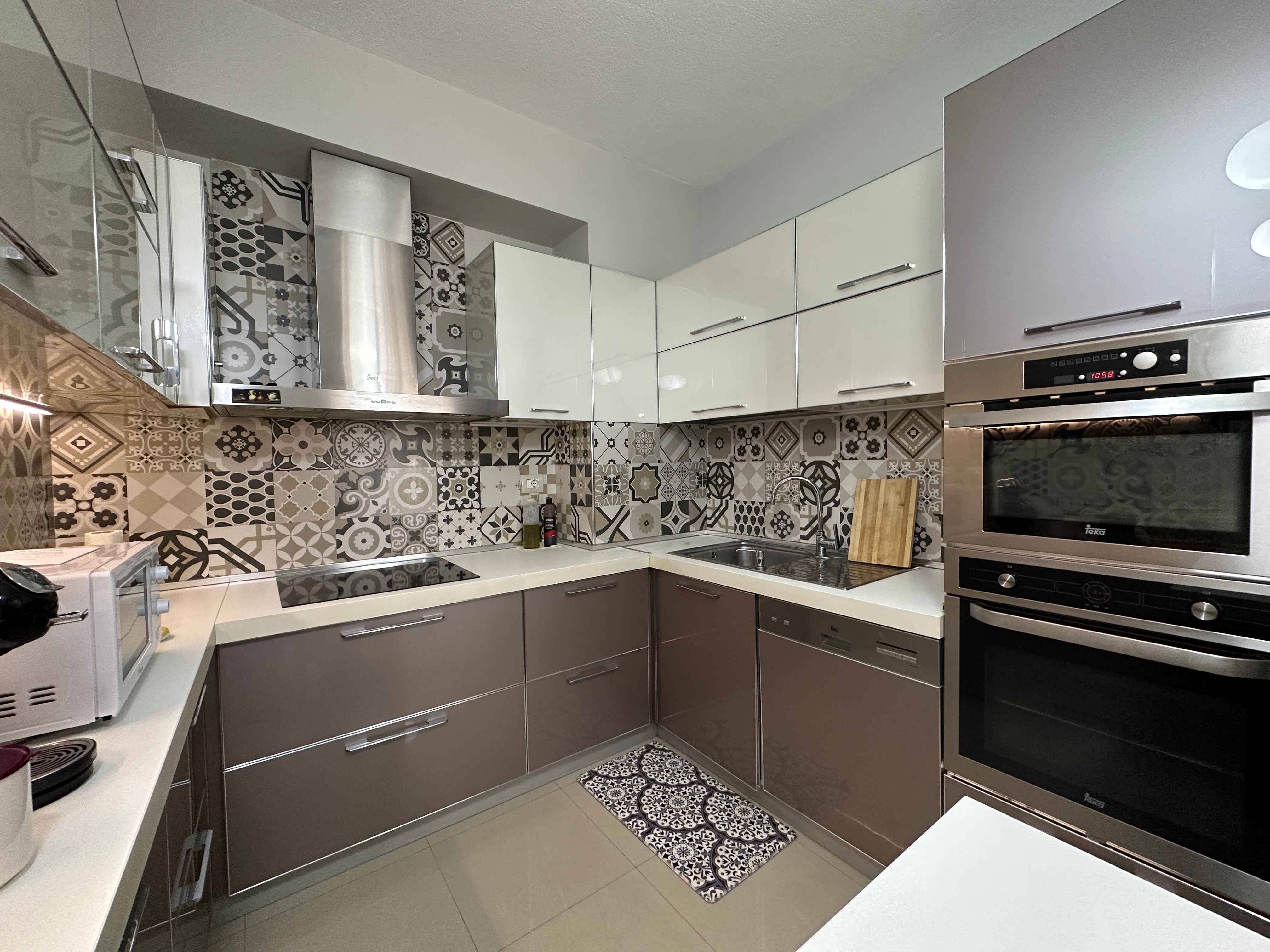 L'appartamento e composto da un ampio salone con divani tv ed un tavolo per 4 persone, una cucina a vista moderna con tutti gli accessoripoi troviamo due bagni con box doccia e lavatrice,