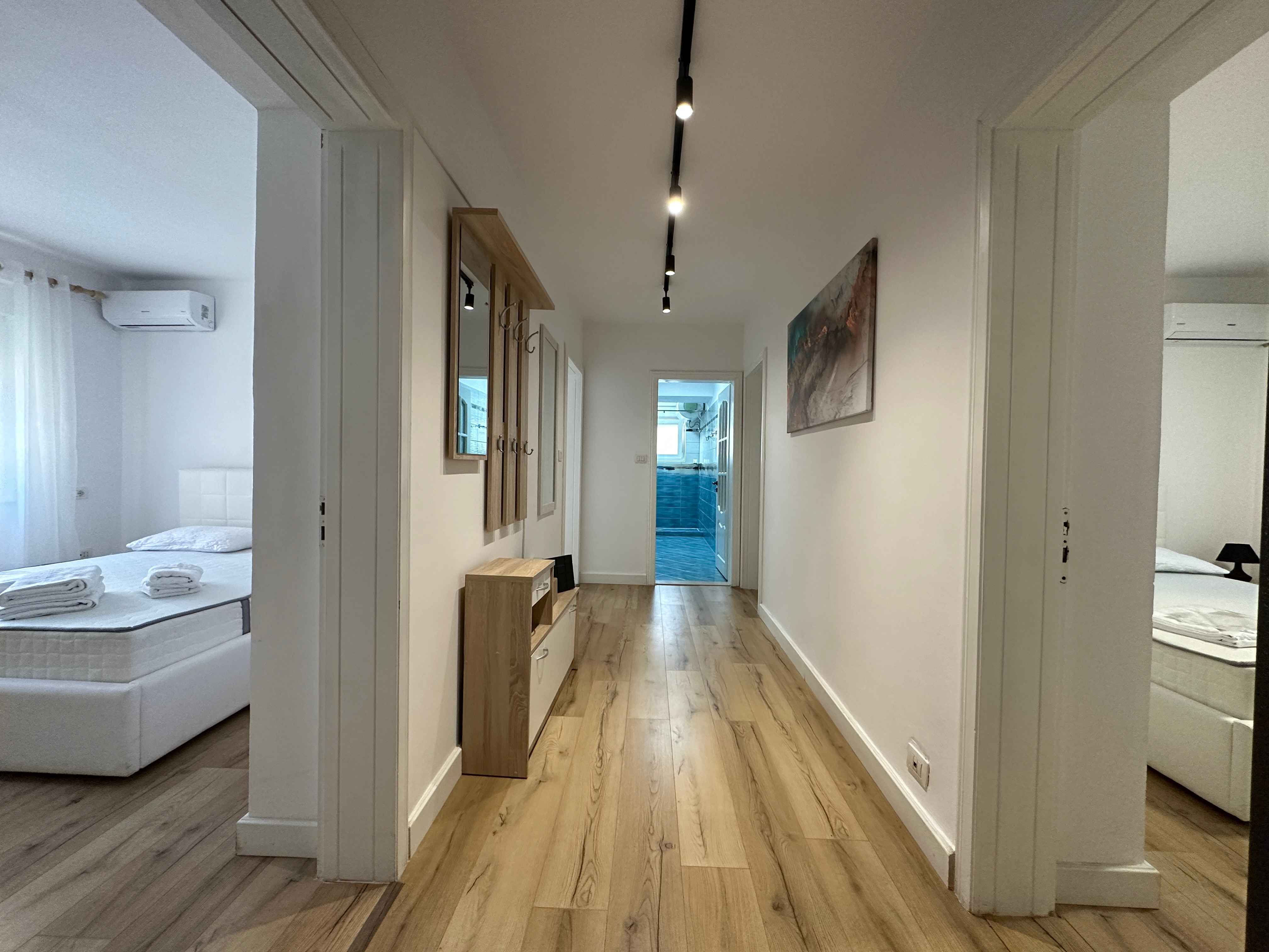 l'appartamento in stile moderno e composto da un ampio ingresso un ampio soggiorno con un comodo divano e tv,una cucina a vista con tutti gli elettrodomestici indispensabili, 3 camere da letto matrimoniali illuminate da grandi finestre e 2 bagno moderno con box doccia lavatrice , uno dei due riservato alla stanza padroonale,ed infine un ampio balcone.