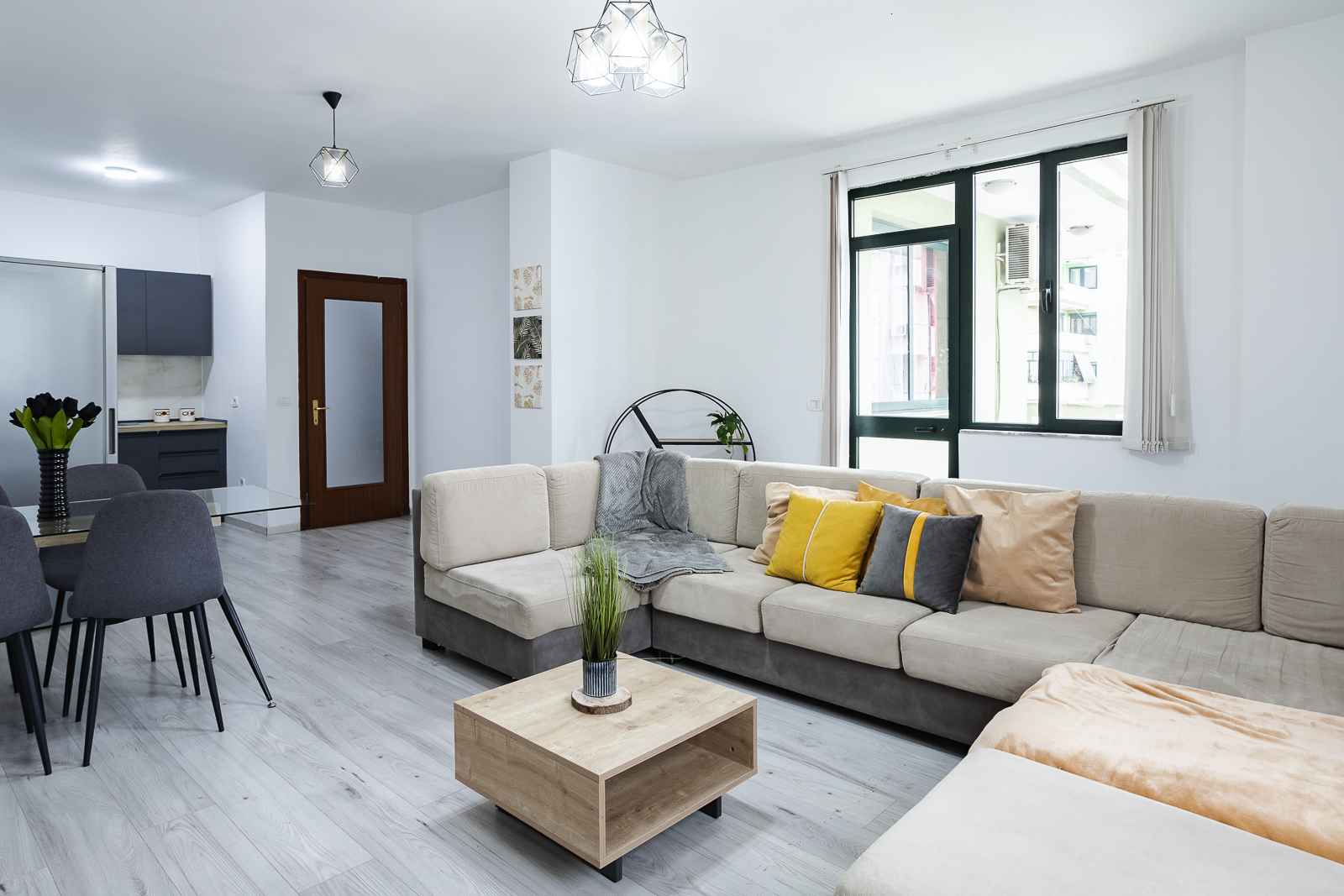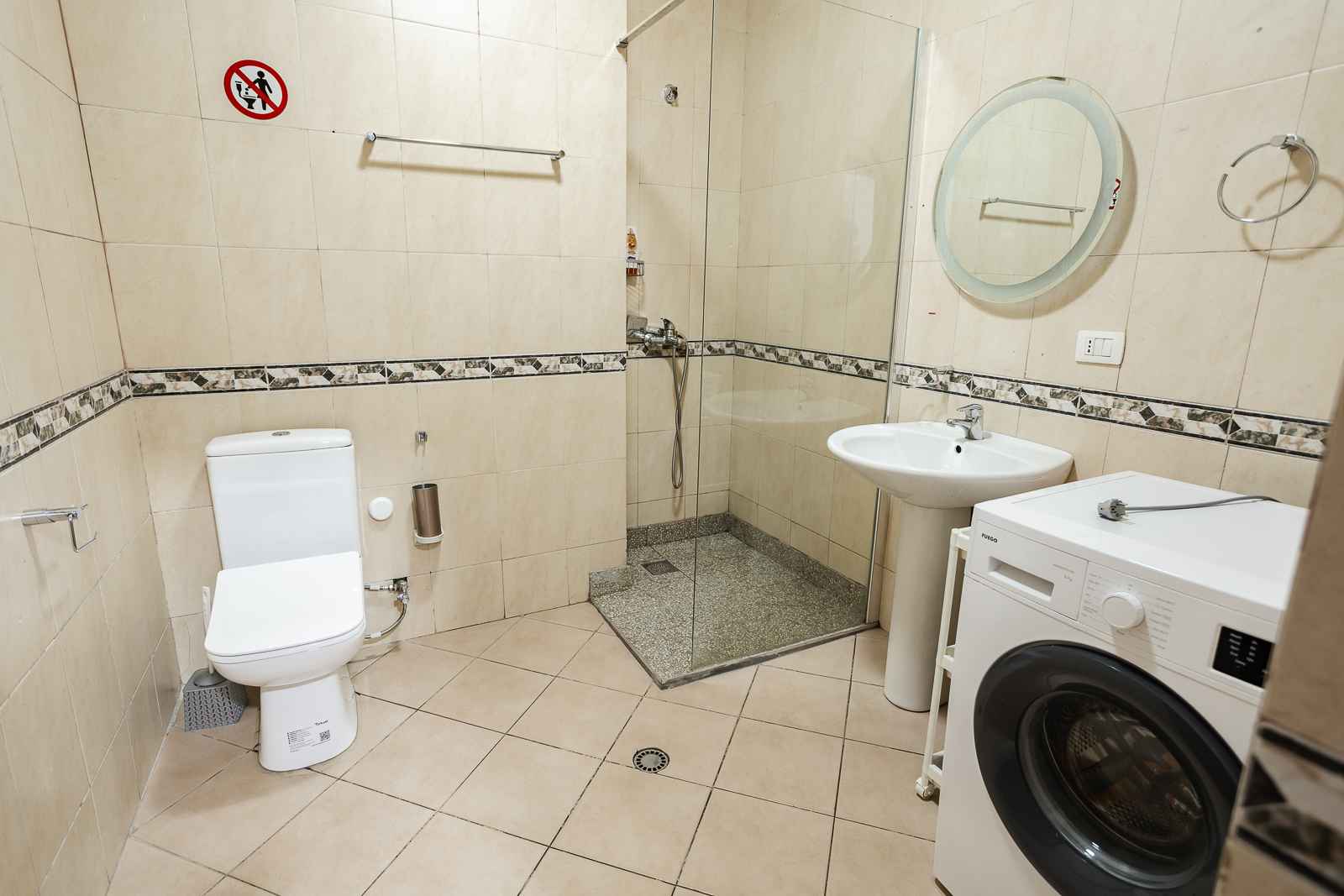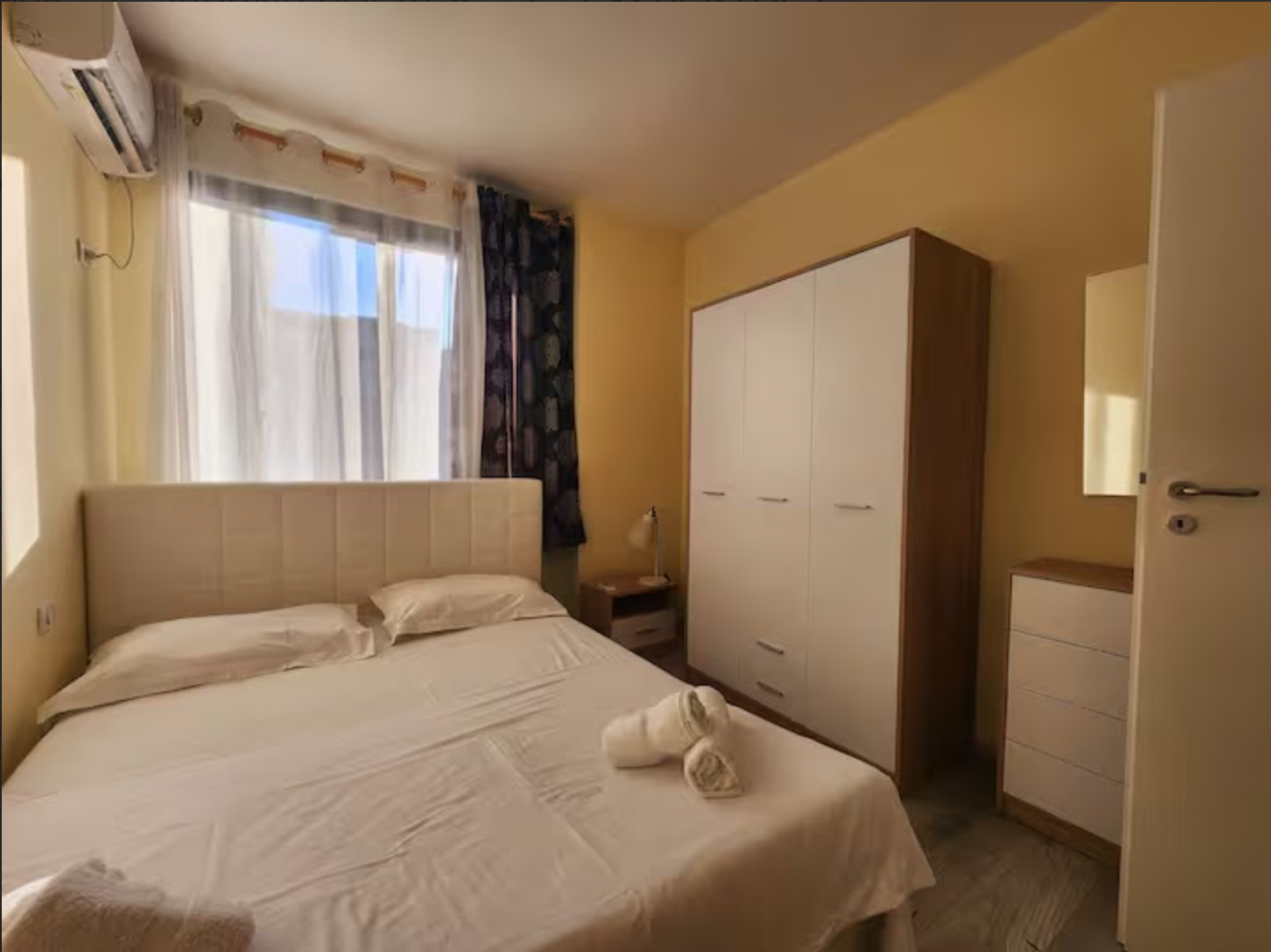 Ampio appartamento al 4° piano di "Ekspozita", a solo 1 minuto dalla zona di Blloku e a 3 minuti da Piazza Skanderbeg. Dispone di un ampio soggiorno con un comodo divano (per 1 persona), una cucina completamente attrezzata, Netflix e un ampio balcone con tavolo. Include 3 camere da letto con letti matrimoniali, 2 letti pieghevoli di qualità e 2 bagni. Può ospitare fino a 9 persone. Perfetto per famiglie o gruppi. Posizione privilegiata nel cuore di Tirana.