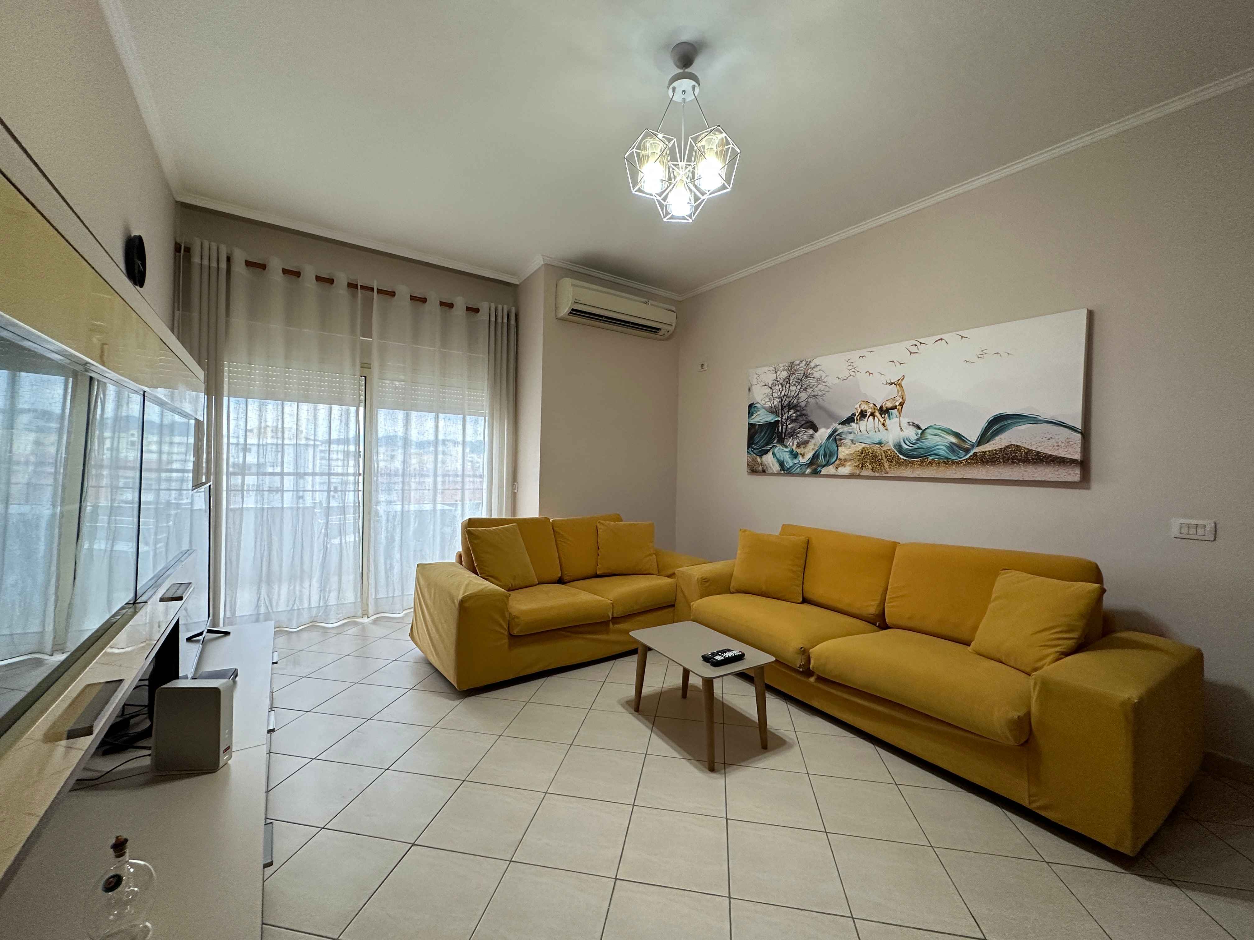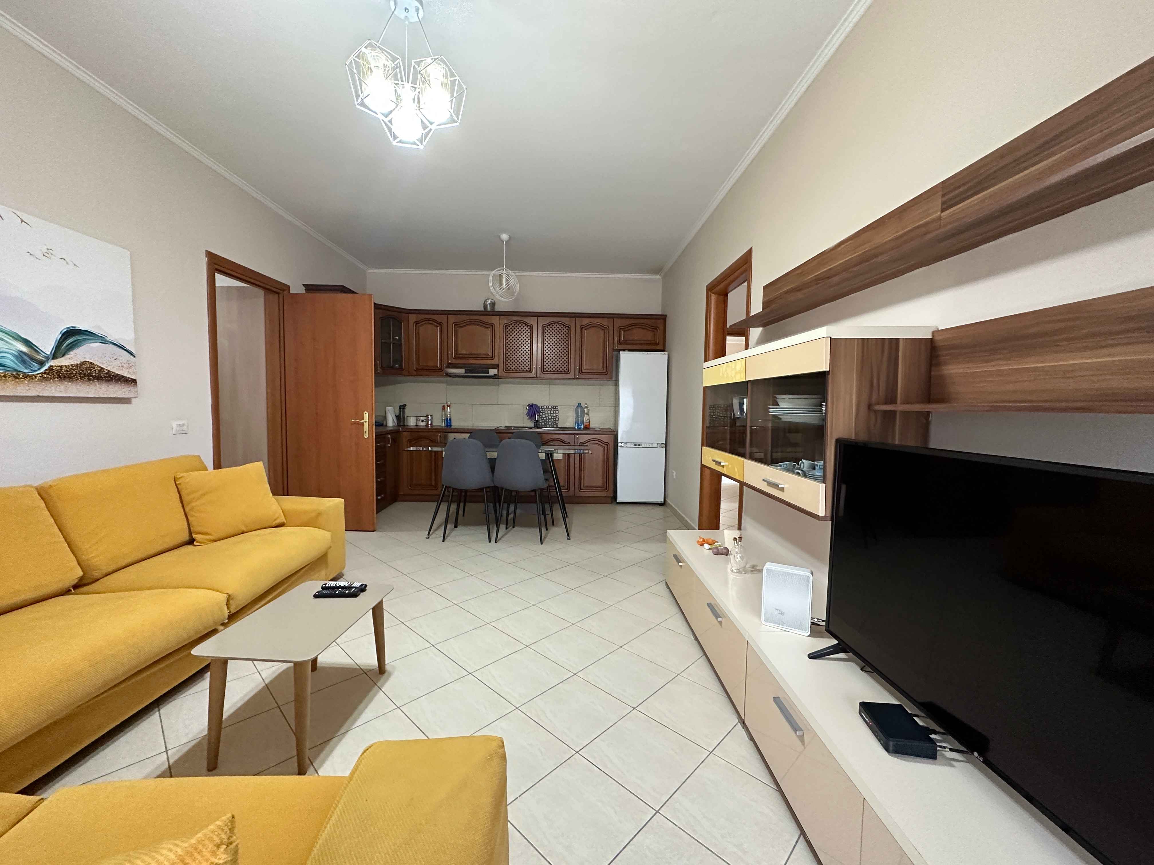 L'appartamento e composto da un ampia cucina completa di ogni elettrodomestico,un ampio soggiorno con divano tv ed aria condizionata, due camere matrimoniali con api armadi e due bagni con box doccia lavatrice ed asciugatrice, inoltre dispone di un piccolo terrazzo con tavolino.