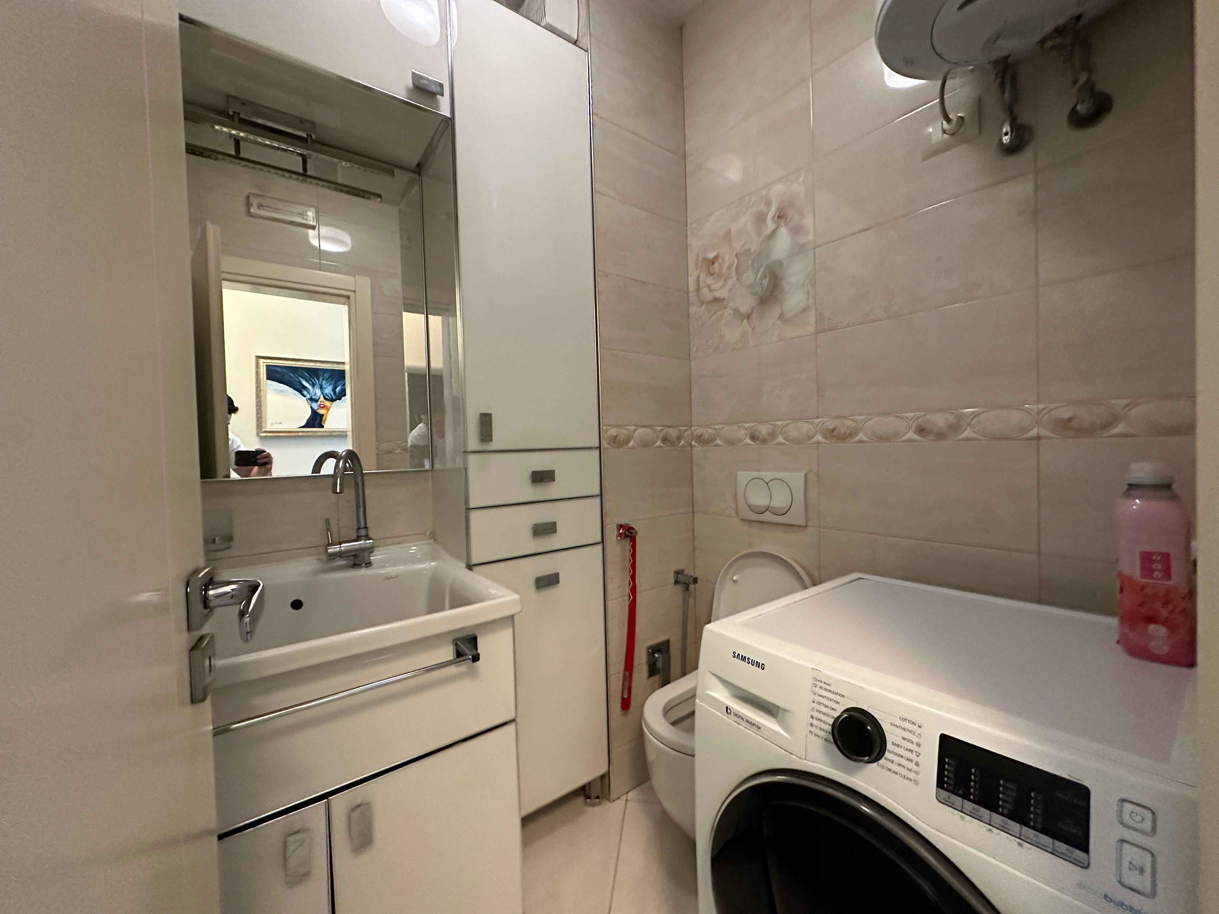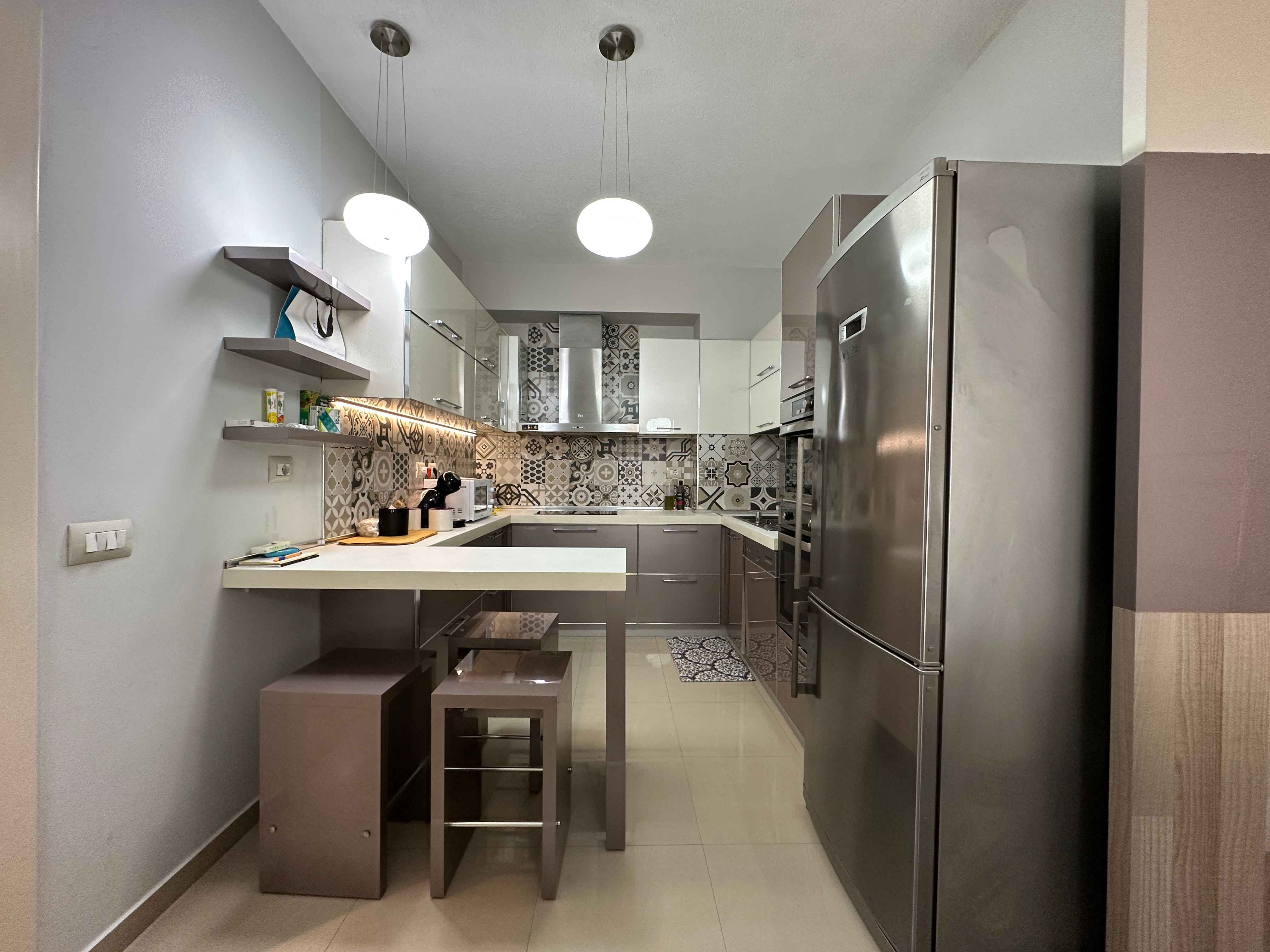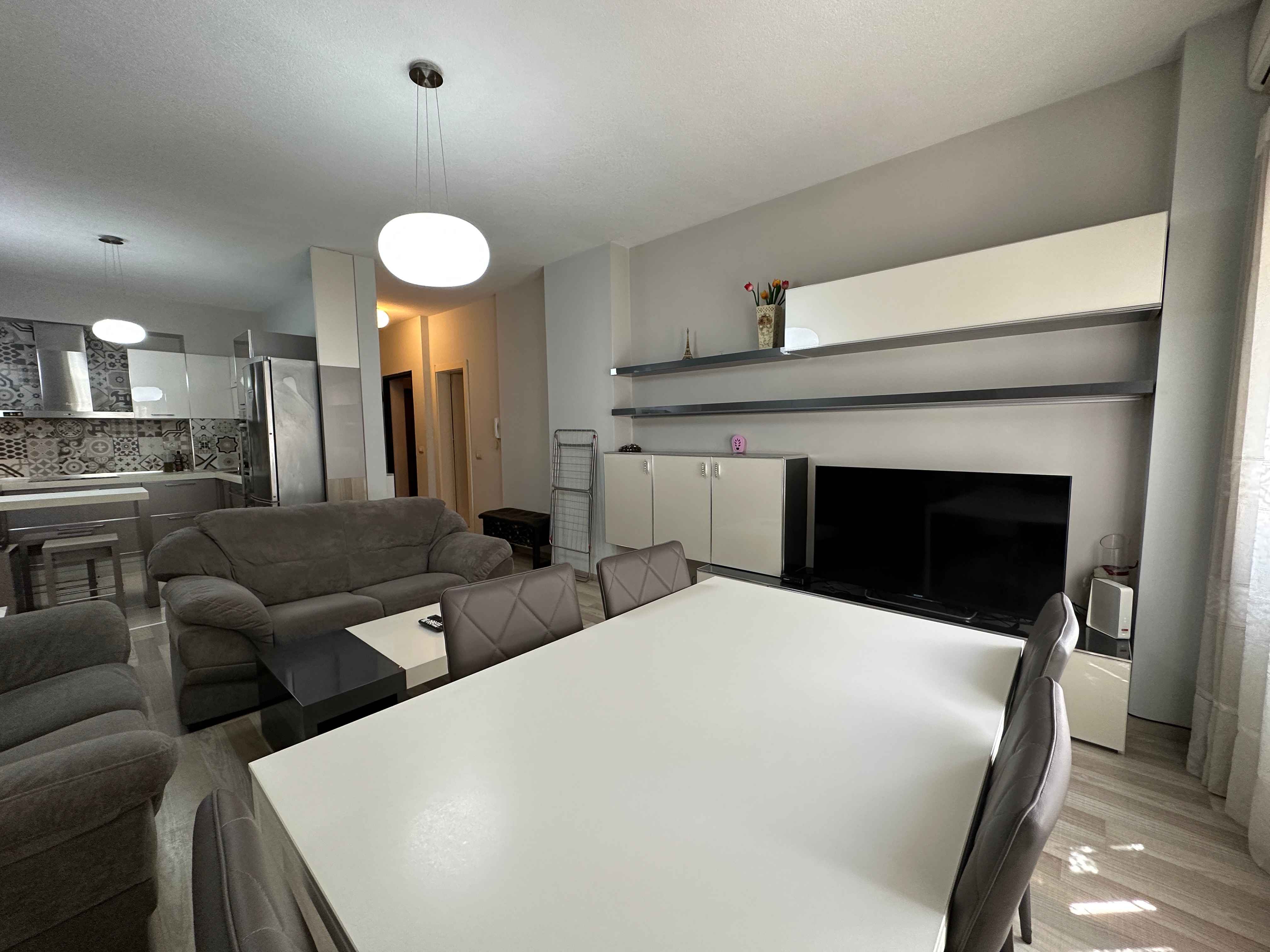 L'appartamento e composto da un ampio salone con divani tv ed un tavolo per 4 persone, una cucina a vista moderna con tutti gli accessoripoi troviamo due bagni con box doccia e lavatrice,