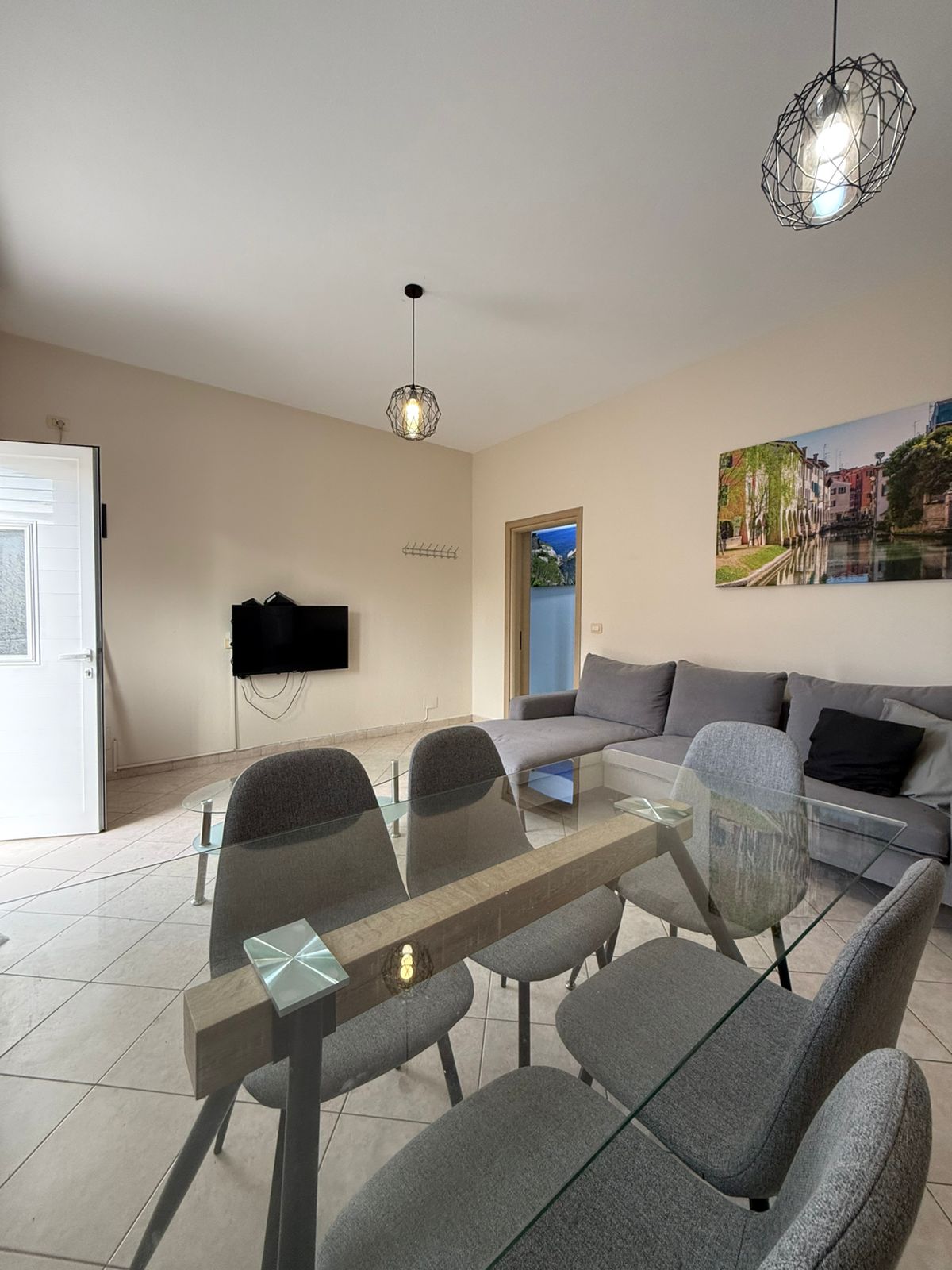 L'appartamento si trova al piano terra della palazzina con un grande ingresso molto spaziono abbiamo ancolo cucina con soggiorno , un comodo divano e tv, poi abbiamo un bagno con box doccia e lavatrice , una camera da letto.
