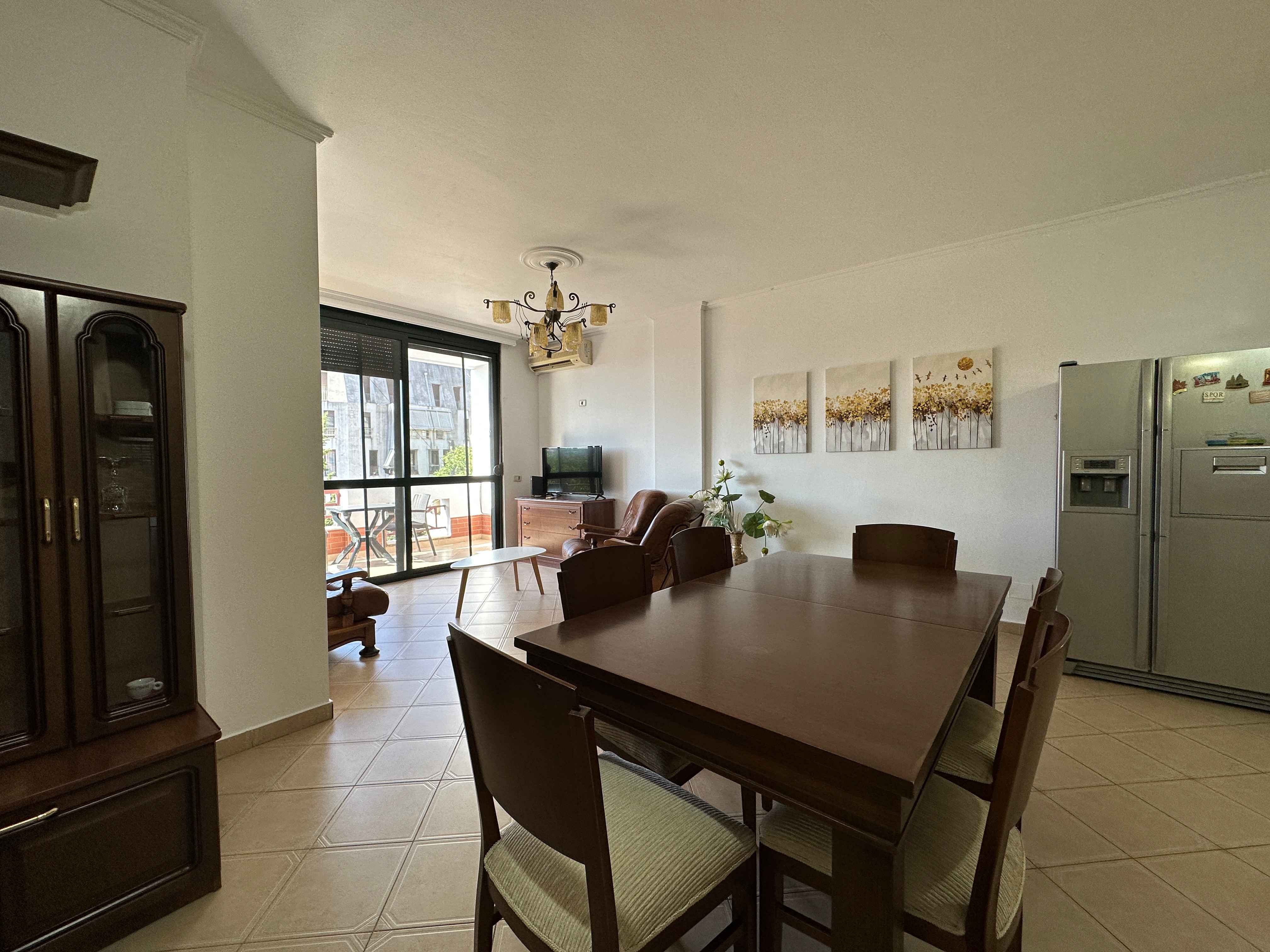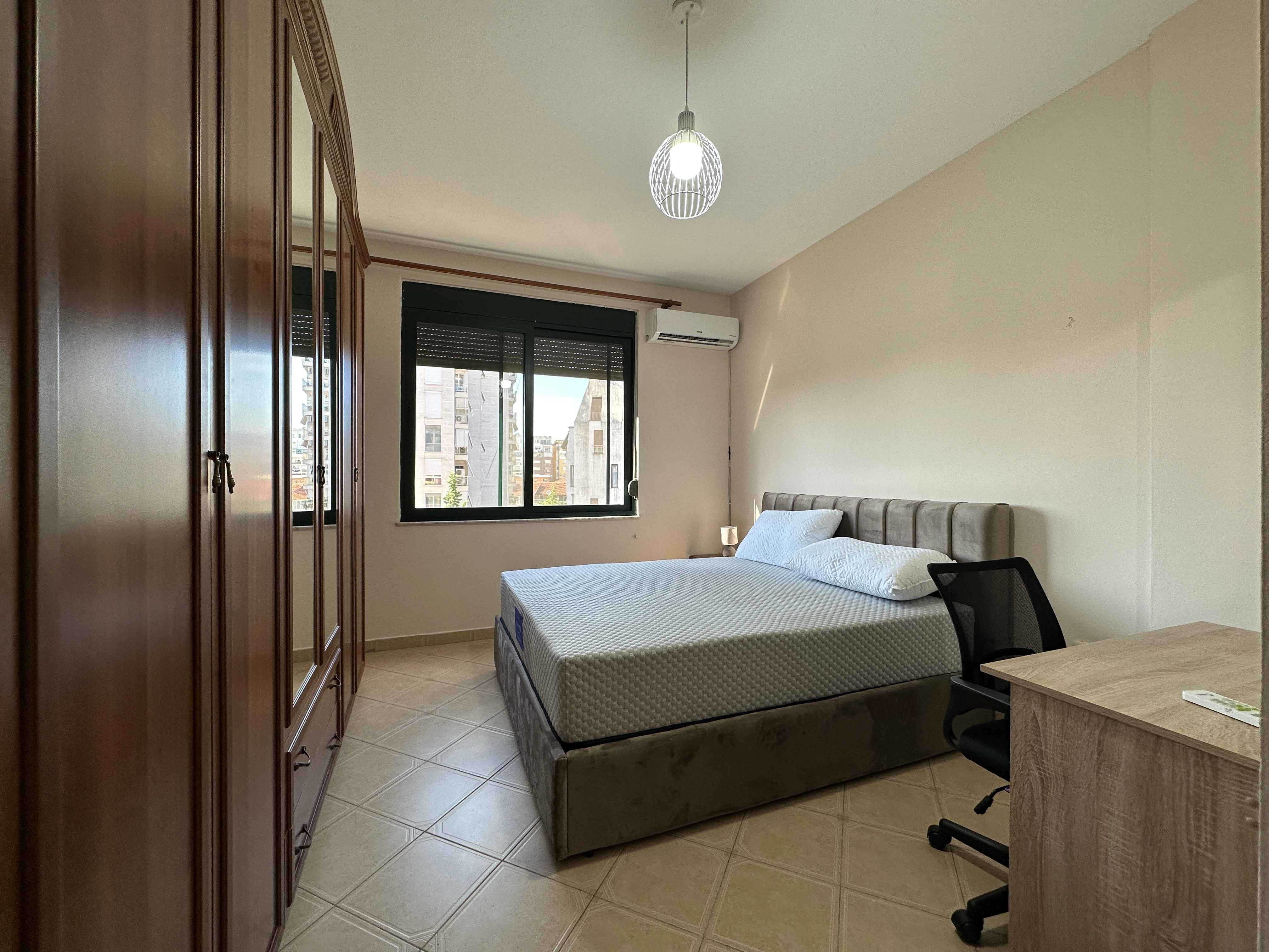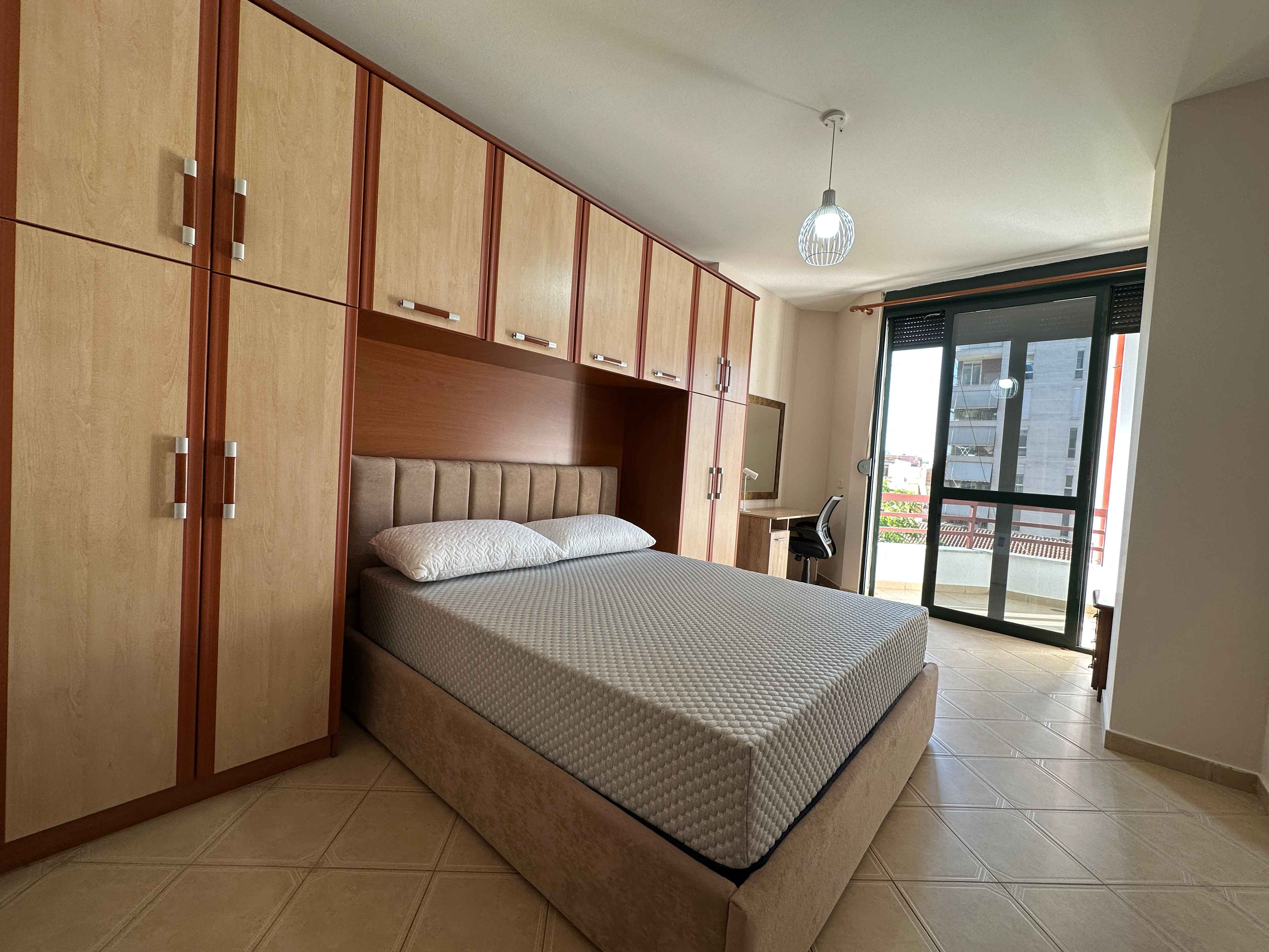 l'appartamento e composto da un ampio ingresso un ampio soggiorno con un comodo divano e tv,una cucina a vista con tutti gli elettrodomestici indispensabili, due camere da letto matrimoniali illuminate da grandi finestre e 2 bagni moderni con box doccia,nel soggiorno troviamo anche una portafinestra che da sul balcone.
