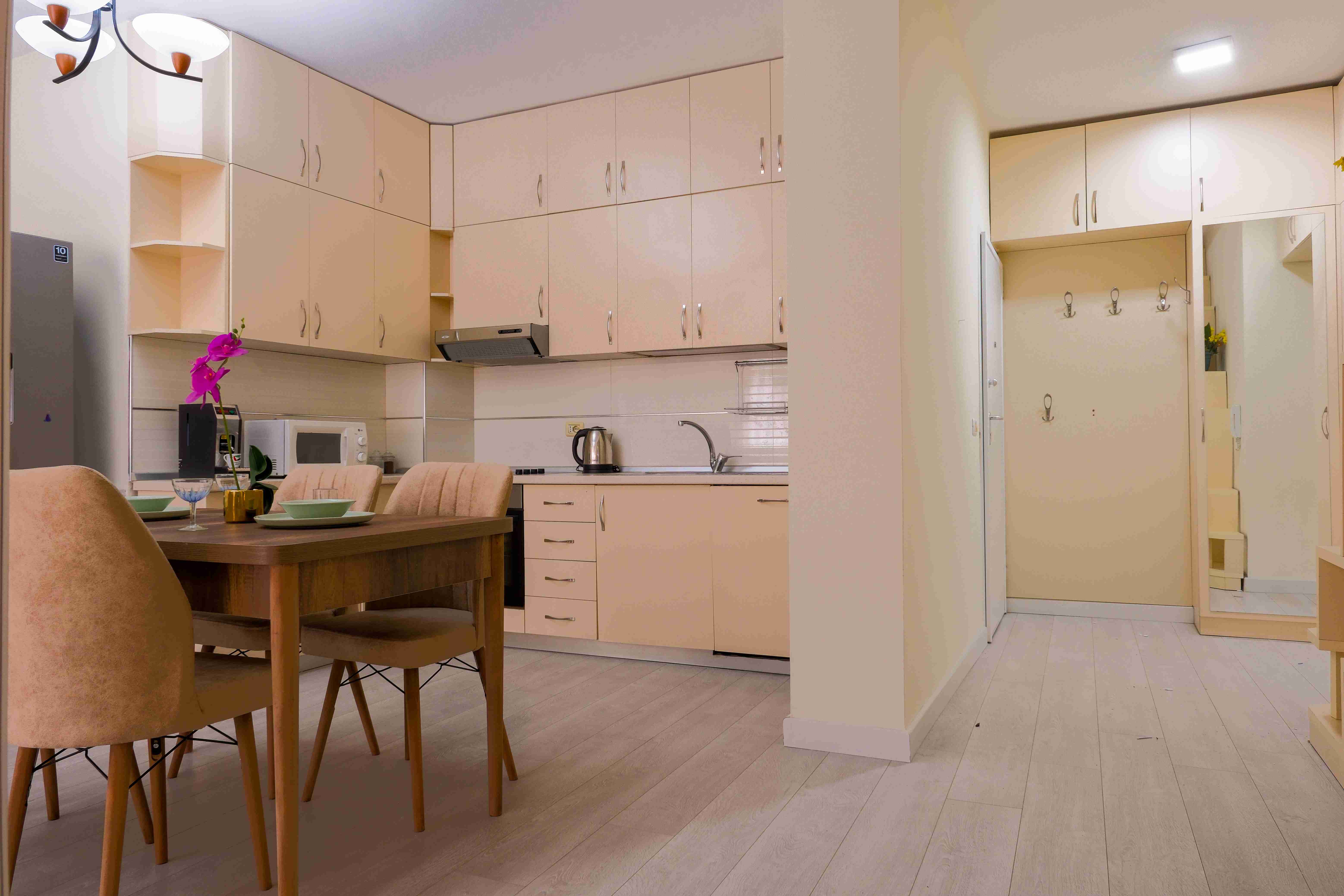 Accogliente appartamento con 1 camera da letto vicino al centro città, a 3 minuti di distanza. Situato al 7° piano, questo elegante appartamento 1+1 offre comfort e praticità.