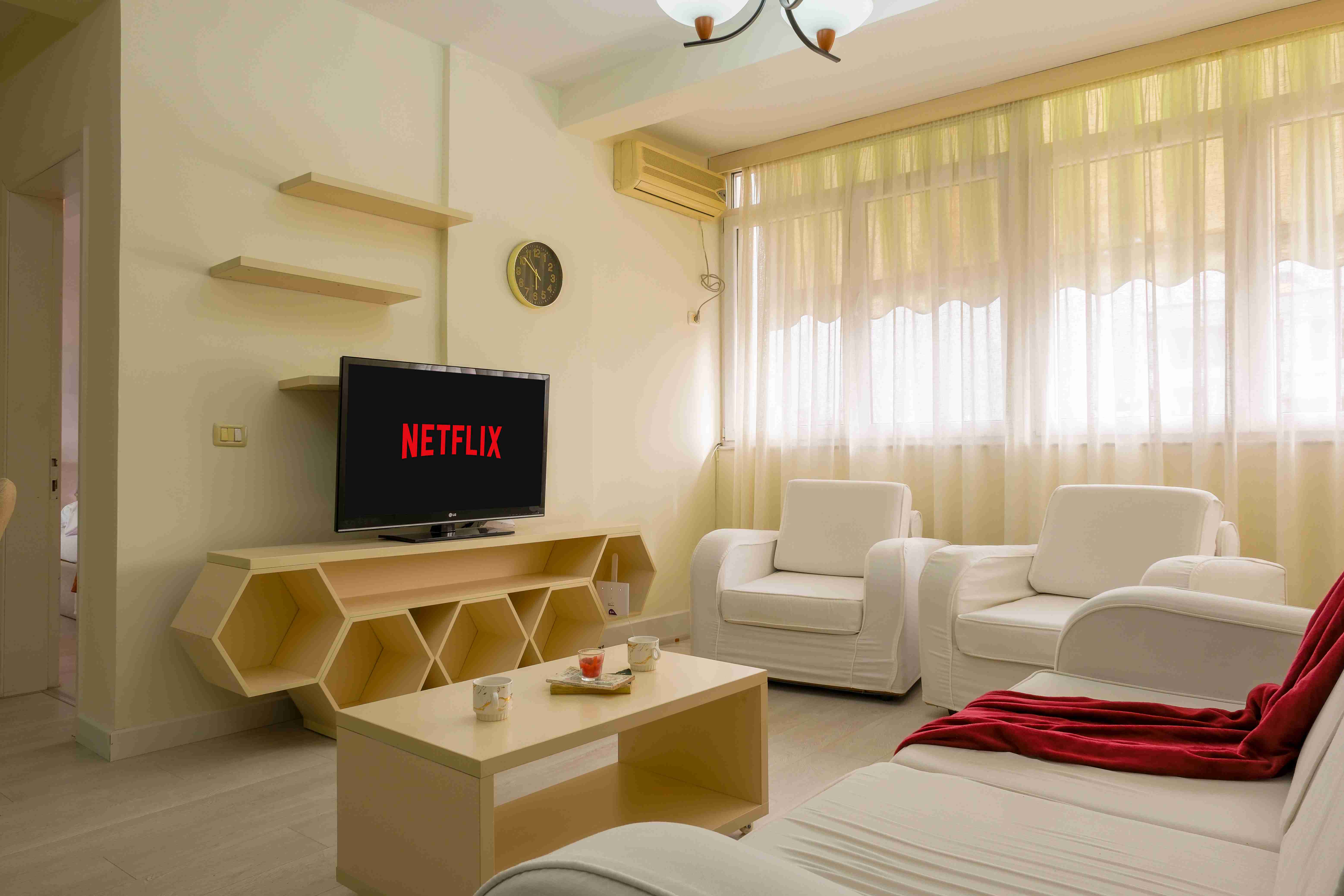 Il luminoso soggiorno è dotato di TV con Netflix, perfetto per serate rilassanti. La cucina completamente attrezzata offre tutto il necessario per preparare i vostri piatti preferiti. L'accogliente camera da letto comprende un comodo letto matrimoniale e ampi armadi. Godetevi una splendida vista dalla vostra nuova casa