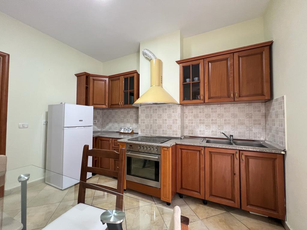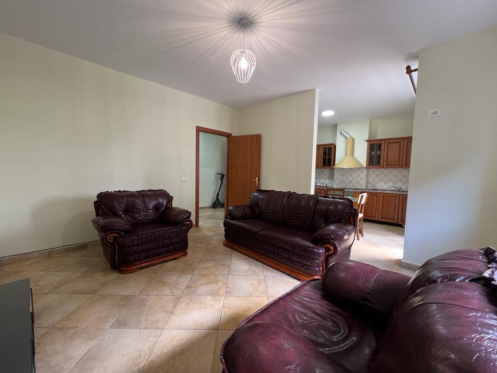 Ampio appartamento situato a 20 minuti da piazza Scanderberg, si presenta con una cucina in legno stile classico ma con ogni accessorio necessario, spostandoci in soggiorno abbiamo un divano con due poltrone in pelle super comode due bagni uno privato per la stanza padronale con vasca da bagno ed uno di servizio in stile moderno con un ampia doccia e due camere matrimoniali.