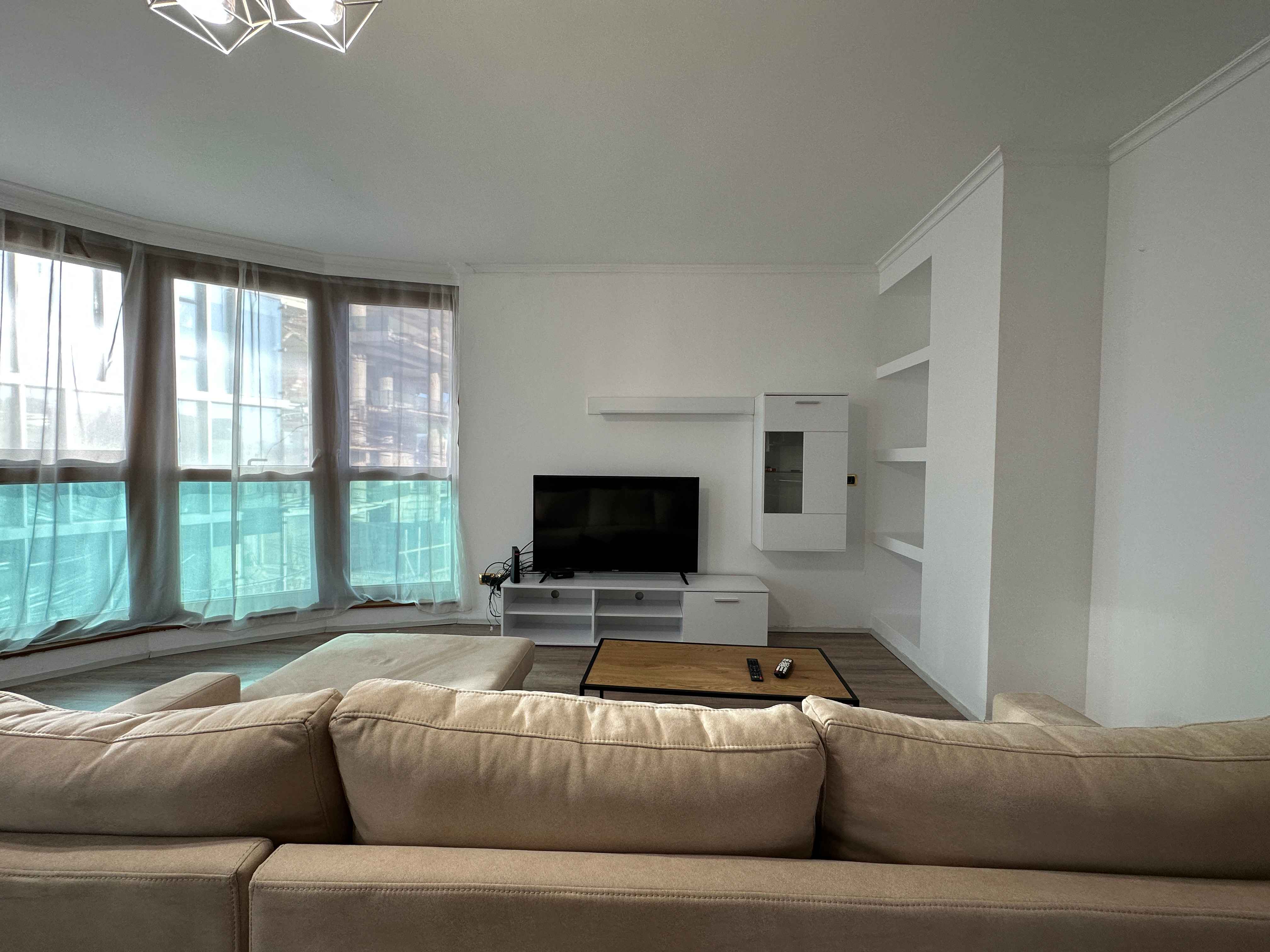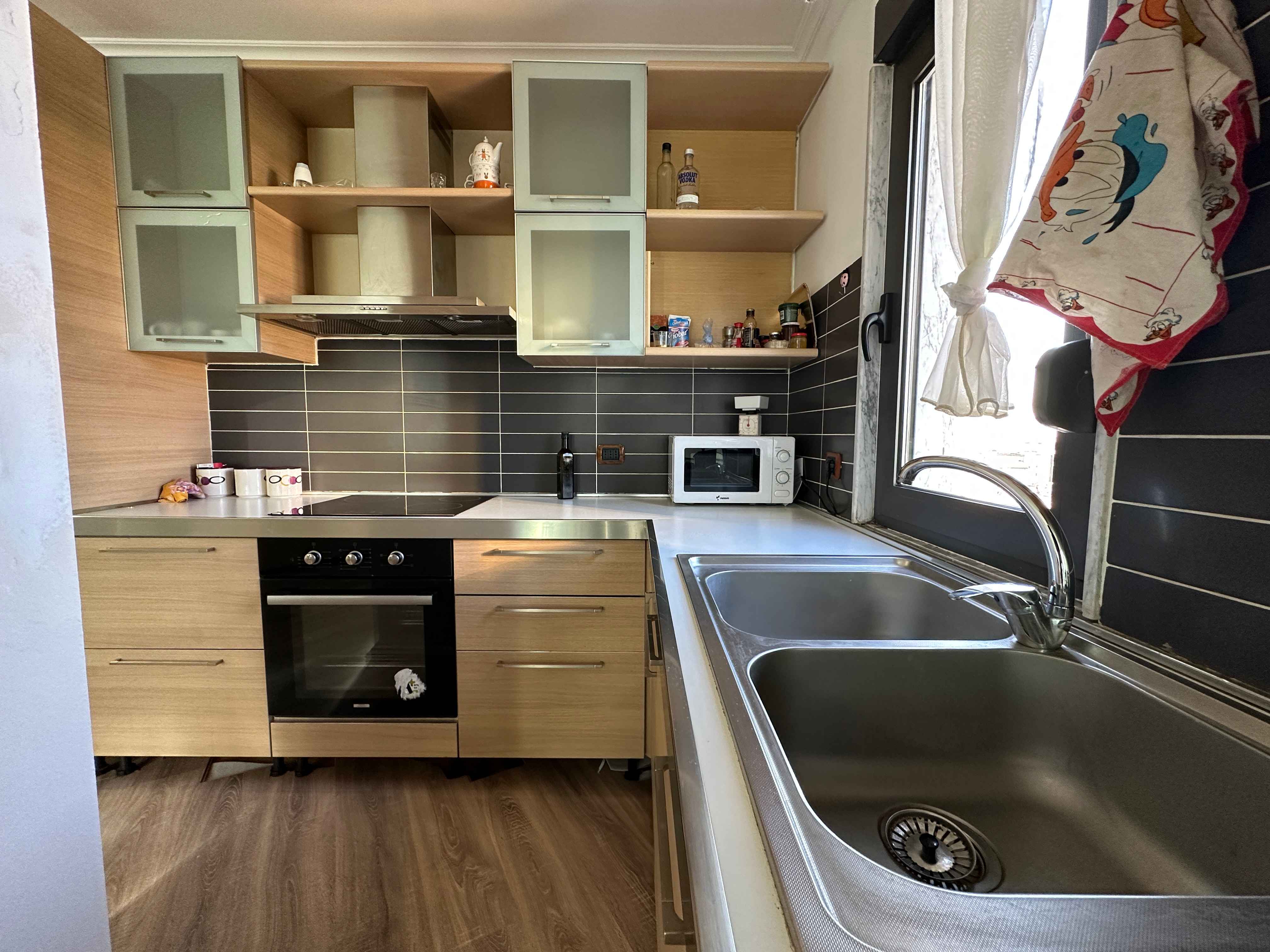 L'appartamento è composto da un ampio soggiorno con cucina moderna a vista che affaccia su un grande finestrone che illumina tutta la sala provvista di un ampio divano e tv a led.